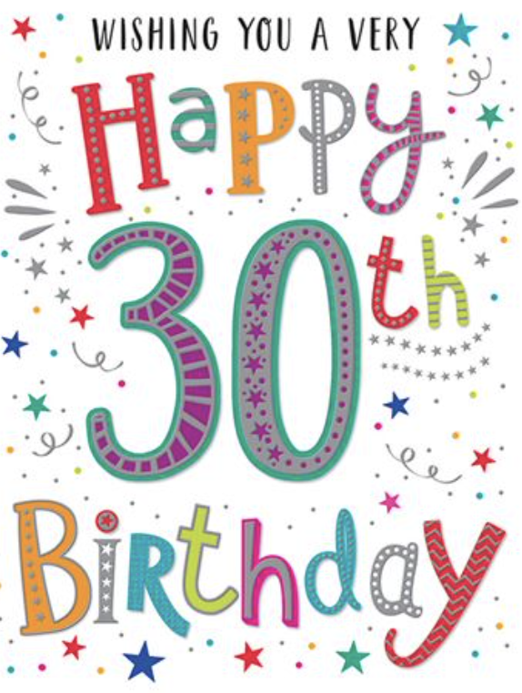 A sparkly 30th birthday card.