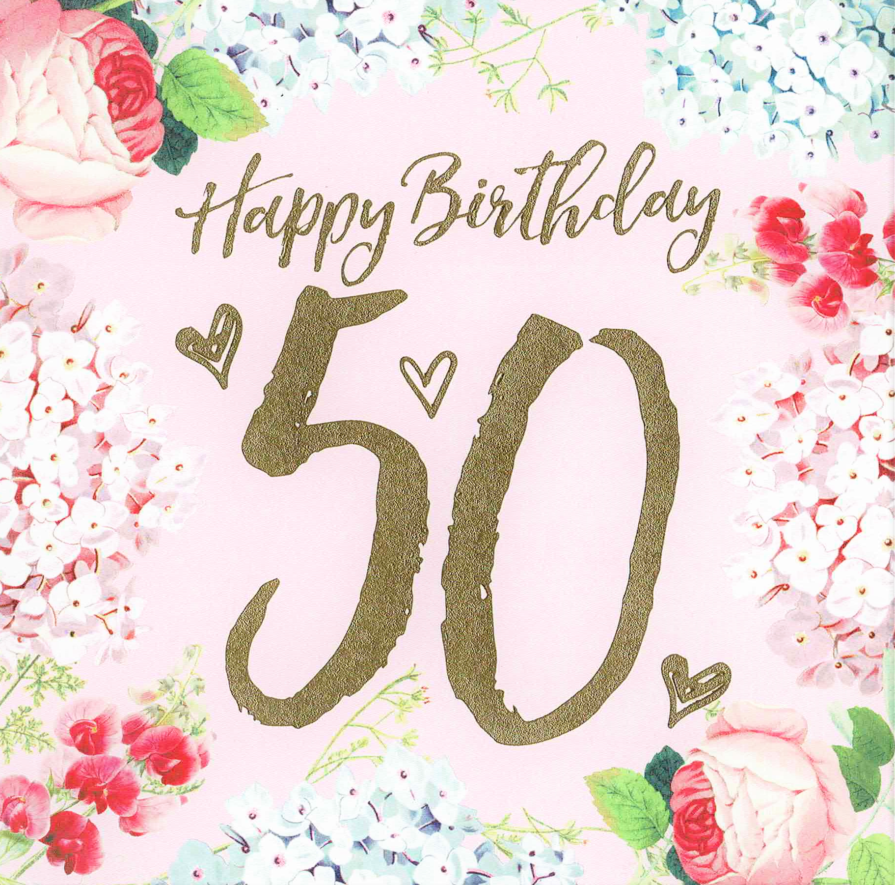 An elegant and floral embossed gold birthday card filled with a multitude of flowers.