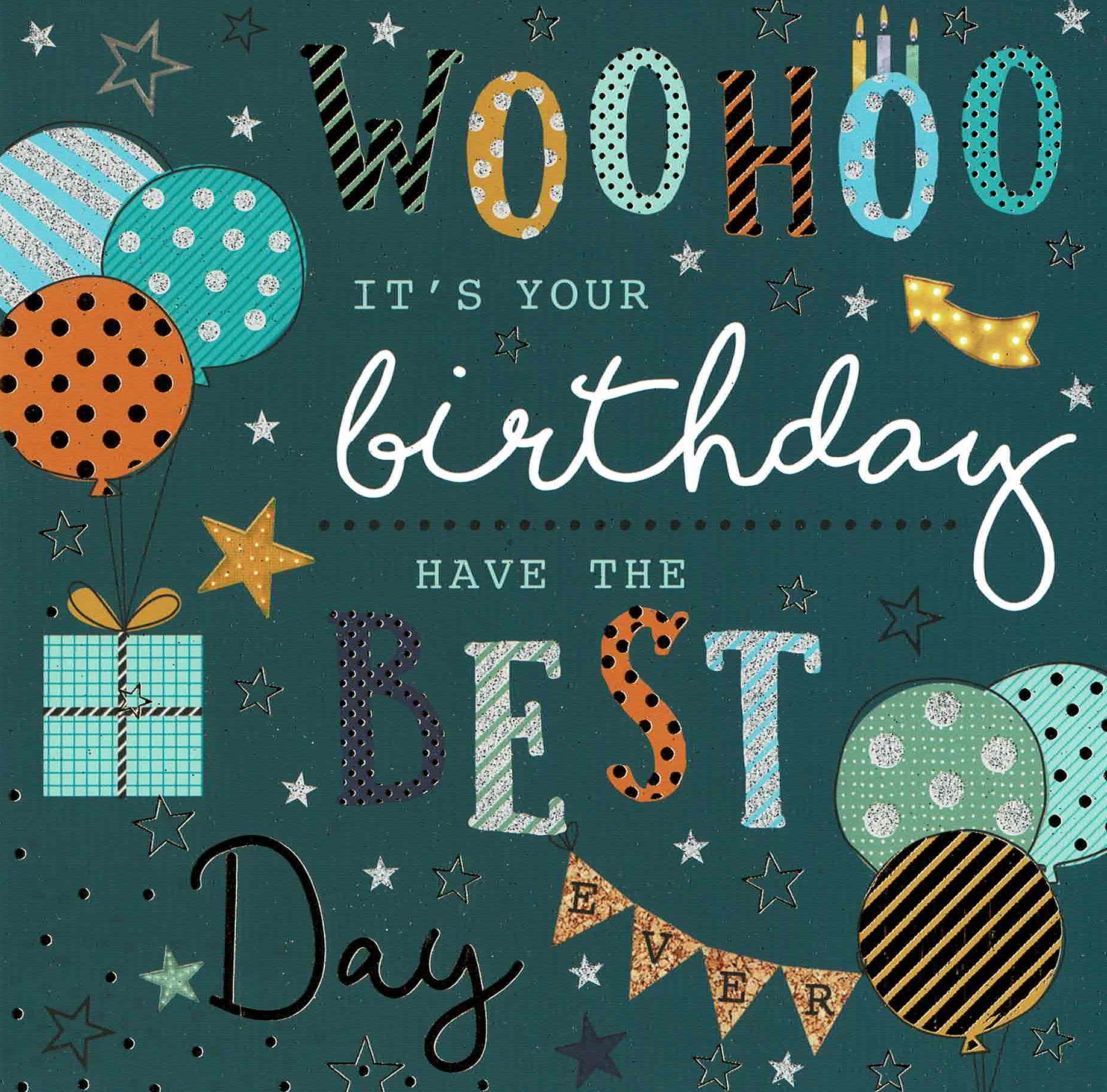 An elegant dark green birthday card with bright gold embellishments due to dark colour of background.