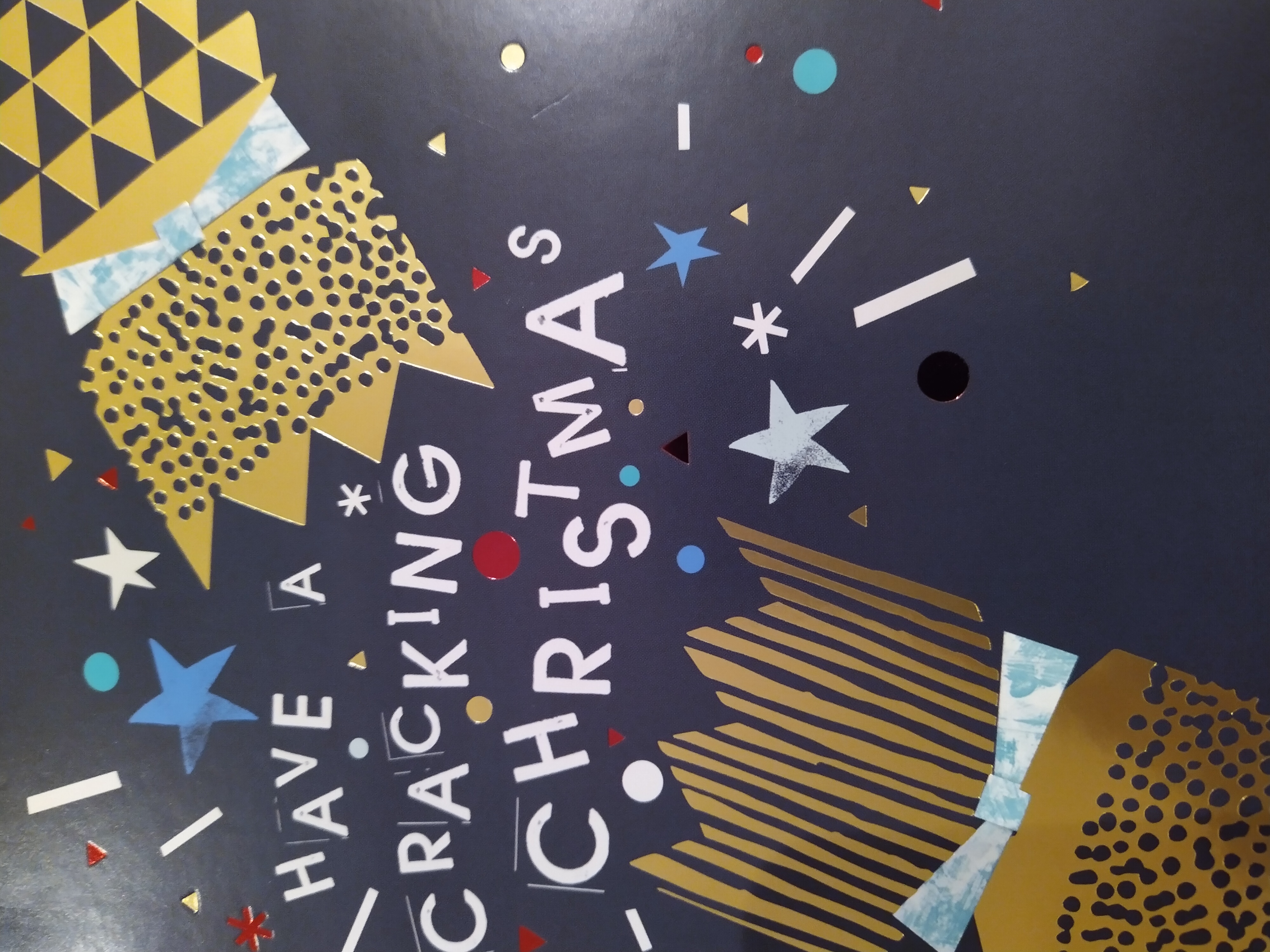 A beautiful, jovial Christmas card with golden embellishments