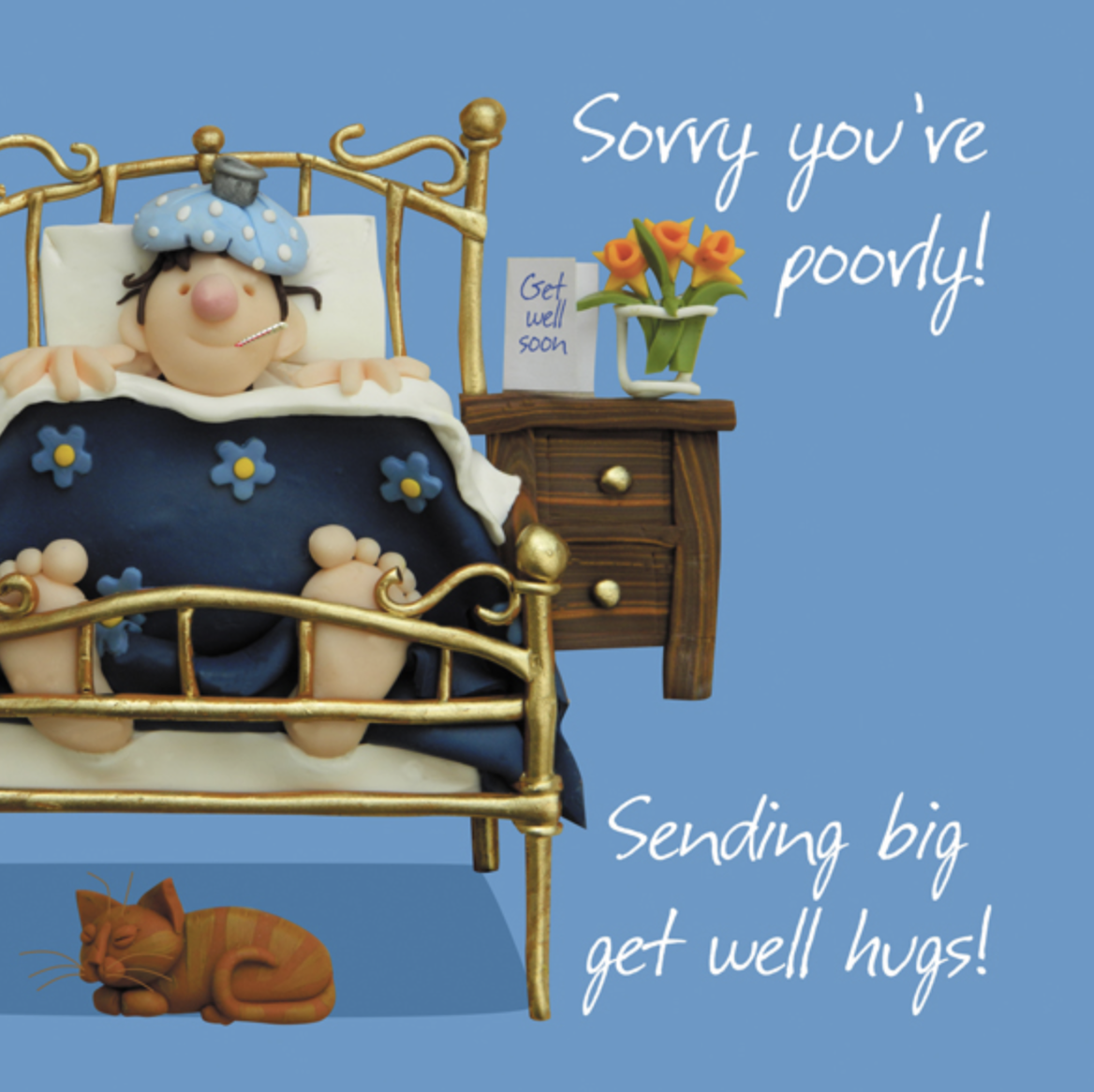 A cartoon themed get well soon card.