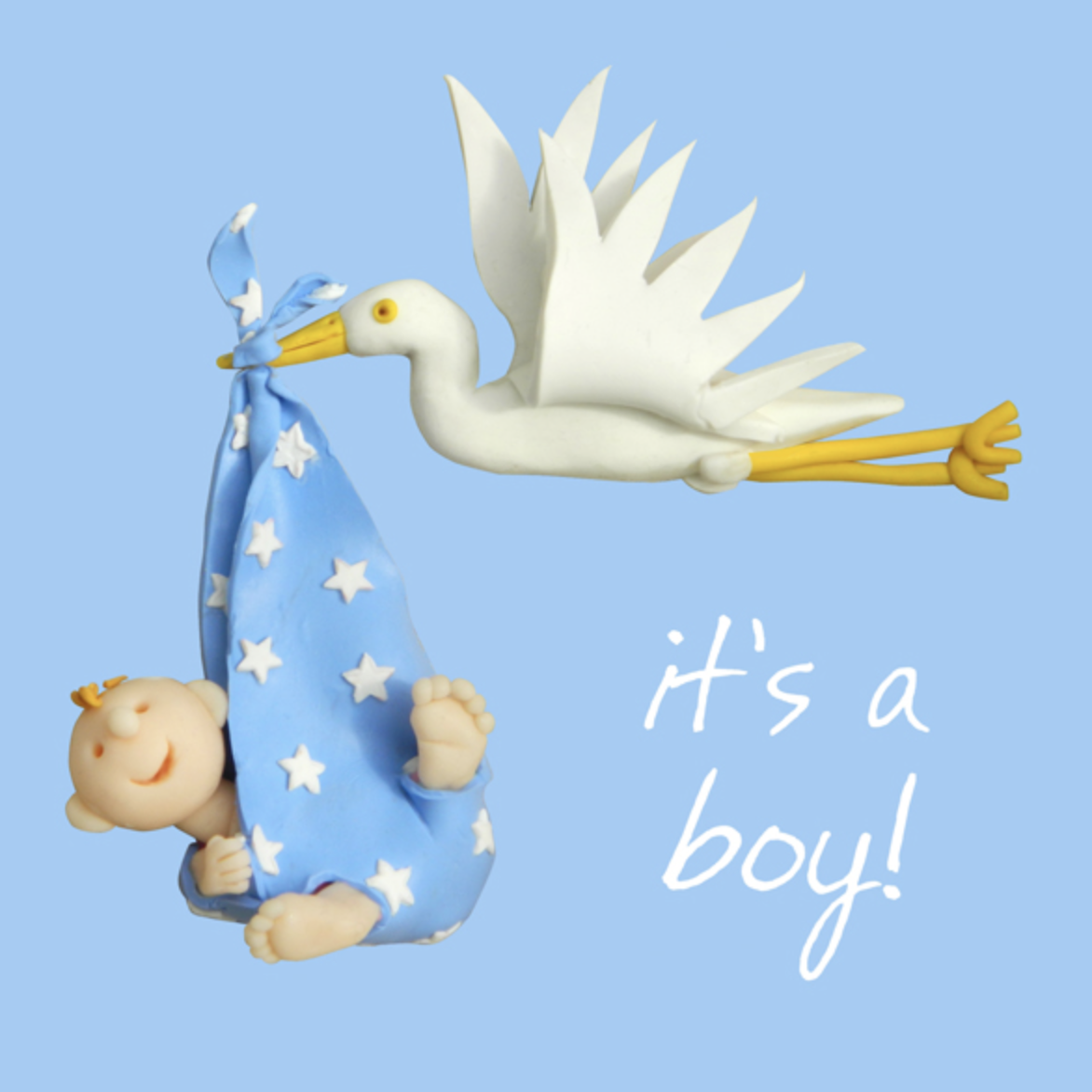 A small, cartoon themed card with a bouncing baby boy!