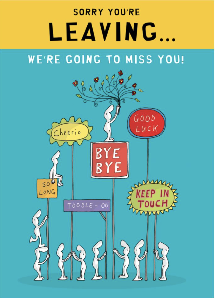 A Bright and colourful leaving card with lots of good luck messages.