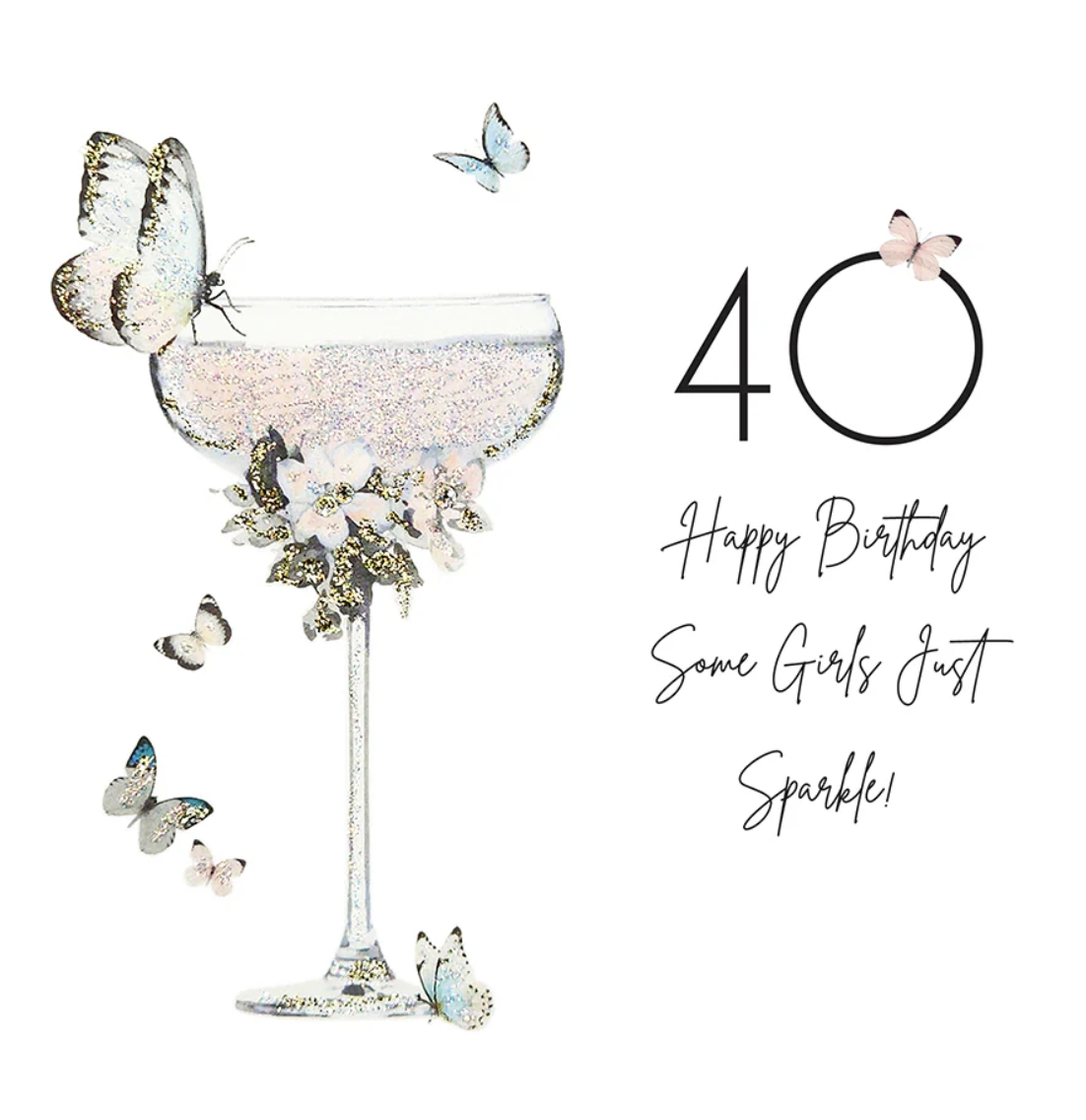A gorgeous sparkly 40th birthday card embellished with glitter and crystals.