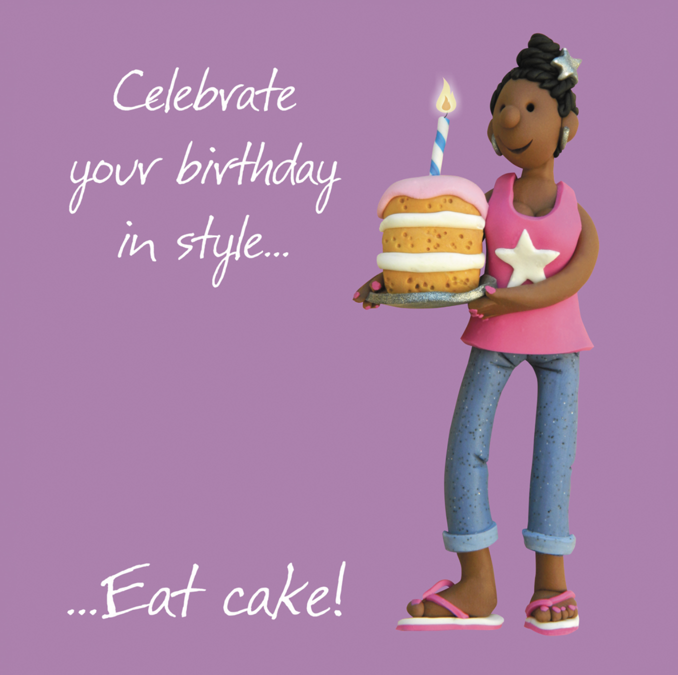 A small, cartoon themed card with a enticing birthday cake!