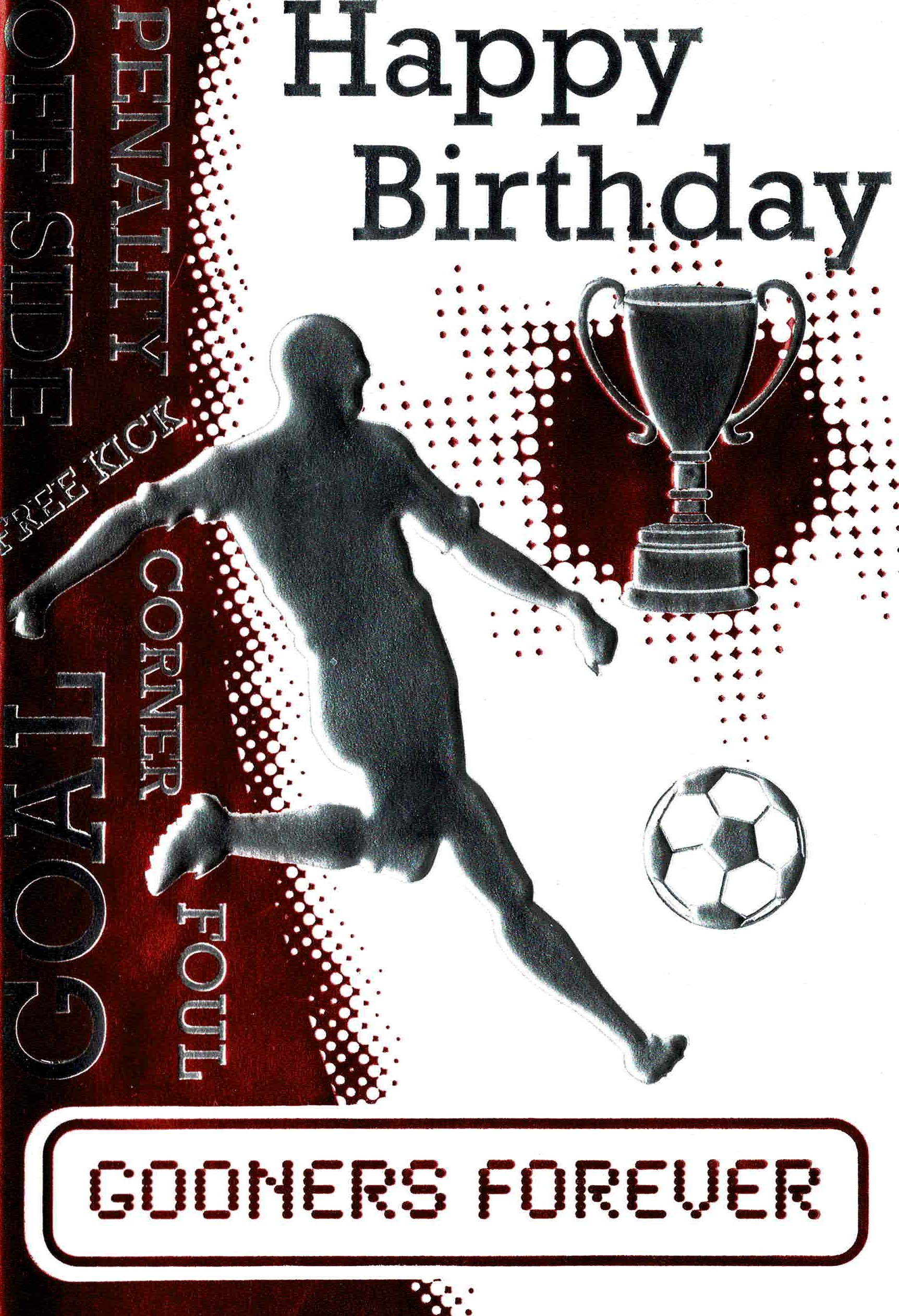 A bright, vibrant happy birthday card ideal for an Arsenal supporter.