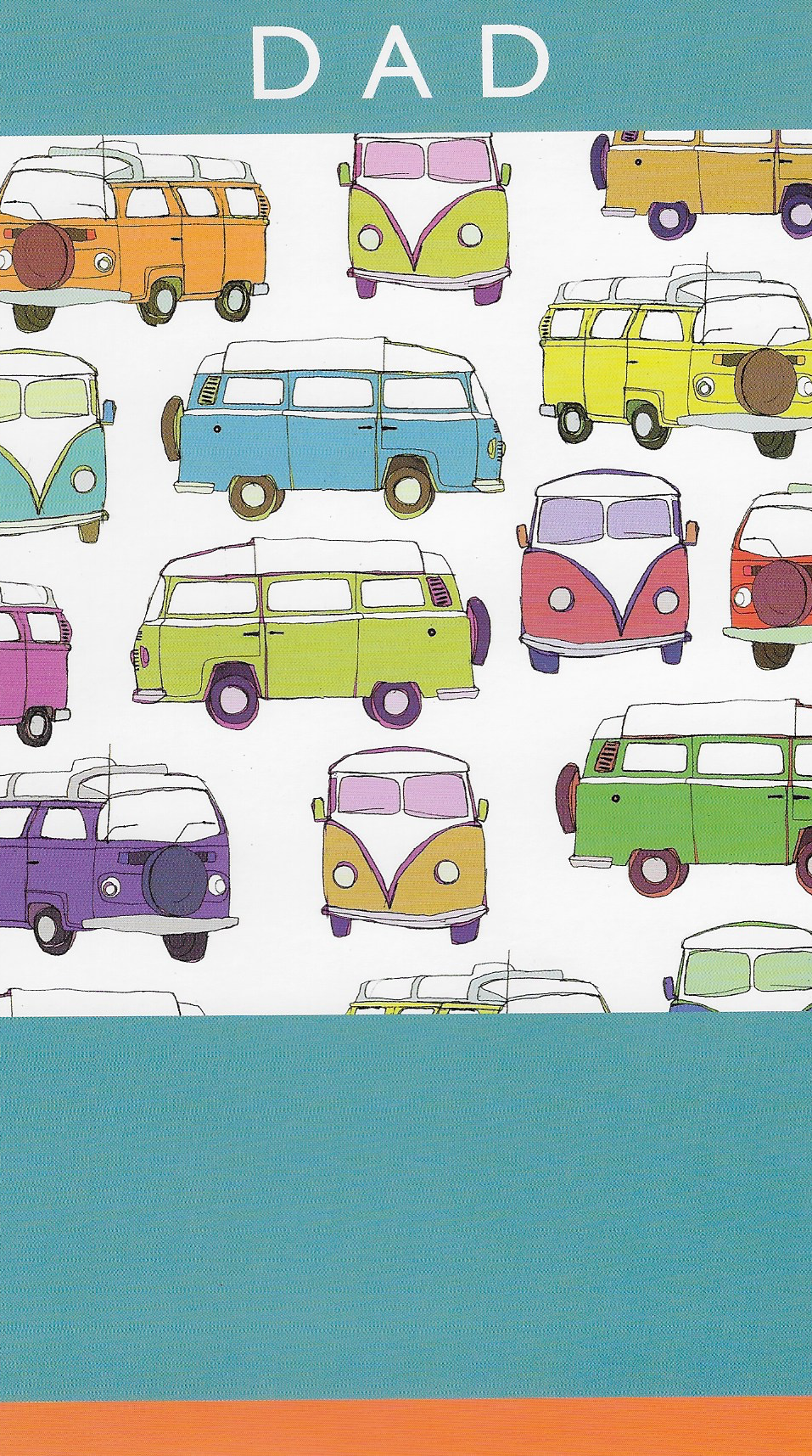 A bright card with colourful pictures of travel vans for the adventurous person.