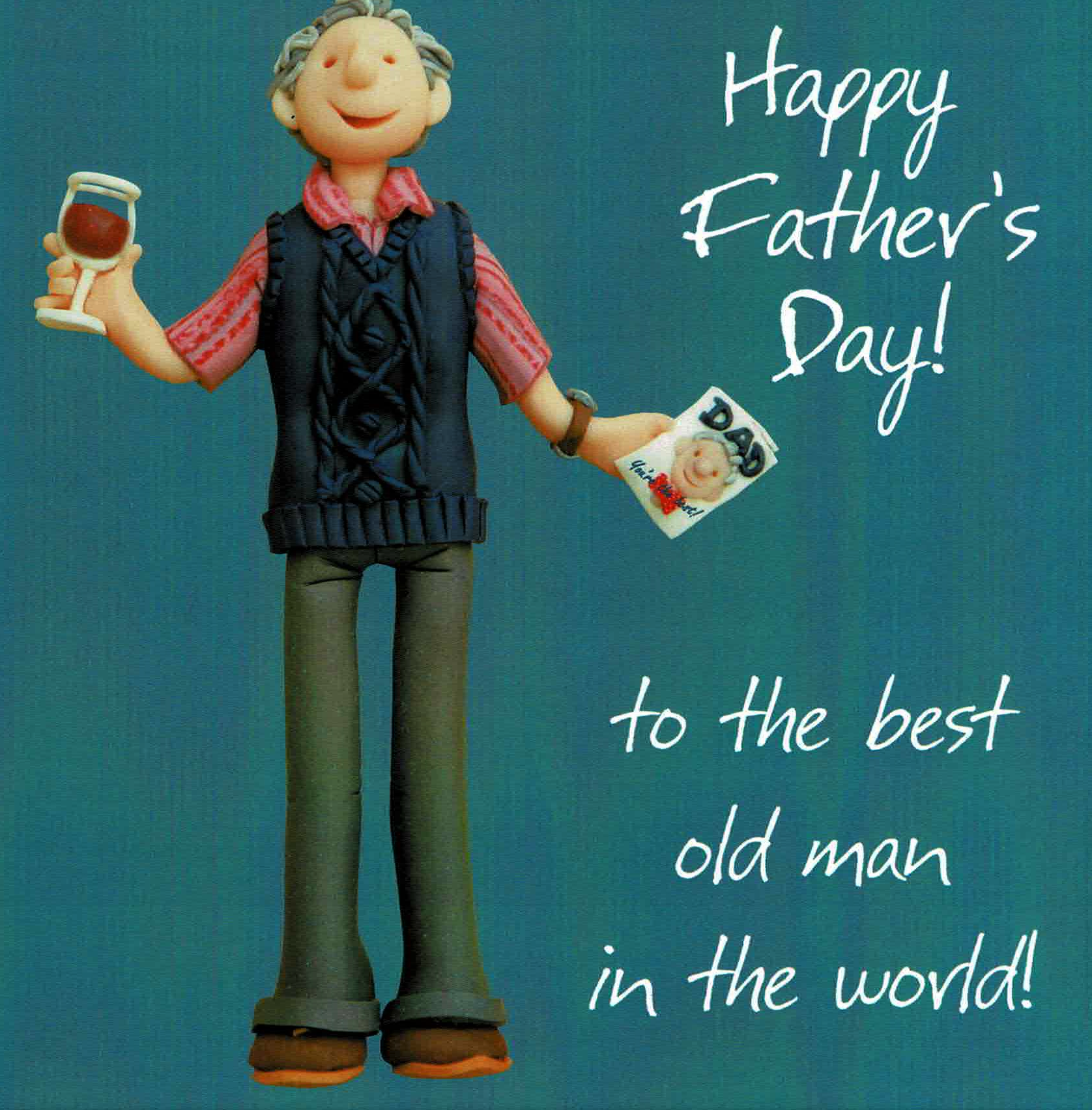 A cartoon themed fathers day card featuring a relaxed dad with wine and the newspaper.