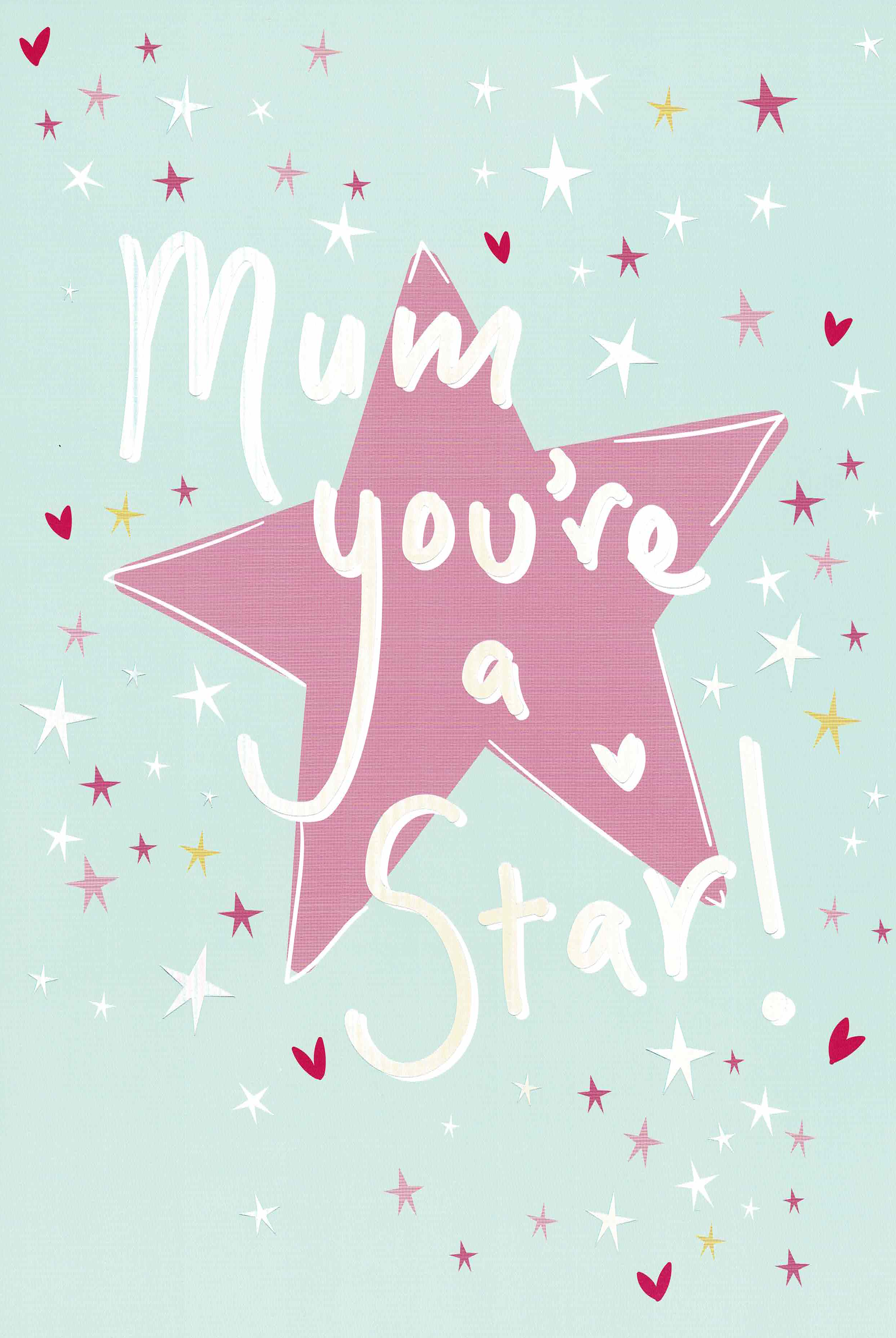 A very large, quirky mothers day card with silver-mirrored lettering.