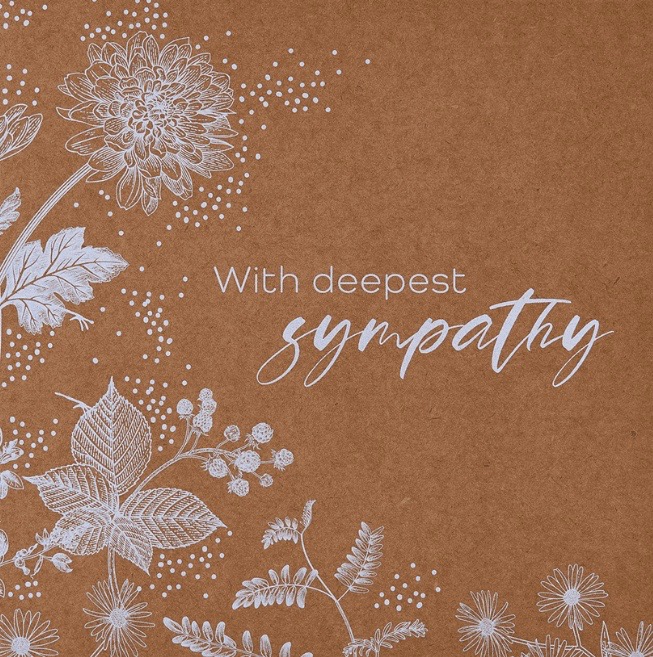 A square, comforting brown sympathy card.