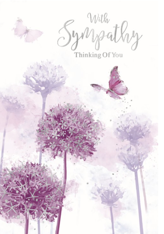 A subdued, watercolour based sympathy card featuring silver highlights.