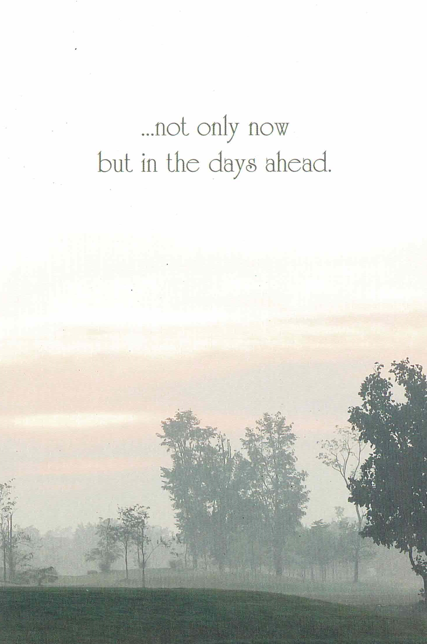 A peaceful sympathy card with an evening forest scene.